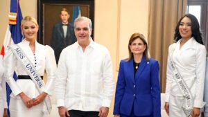 El presidente Luis Abinader y la vicepresidenta Raquel Peña recibieron este martes en el Palacio Nacional a...