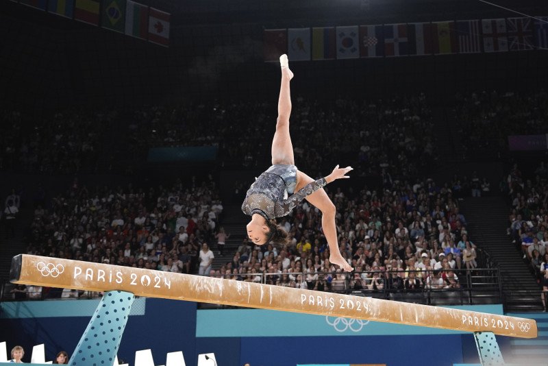 La atleta de 16 años, la integrante más joven del equipo de Estados Unidos en todos los deportes en los Juegos Olímpicos de París 2024, compitió el domingo en dos de las pruebas de clasificación de gimnasia general, lo que ayudó a las mujeres estadounidenses a obtener el puntaje general más alto para avanzar.