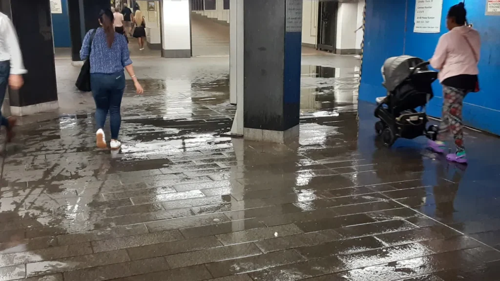 Las tormentas han dejado inundaciones, cortes eléctricos y retrasos en trenes y vuelos en el área triestatal. El chance de lluvia sigue en 80% hasta el viernes.